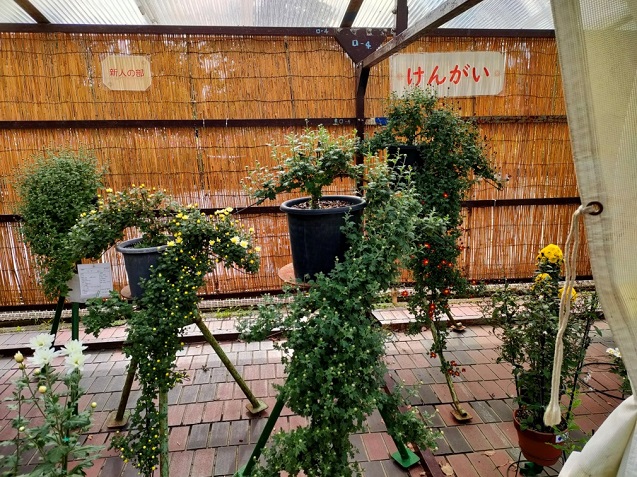 「小菊盆栽」、「福助作り」、「だるま作り」、「ドーム菊」など、様々な作品が出品されています(*^o^*)