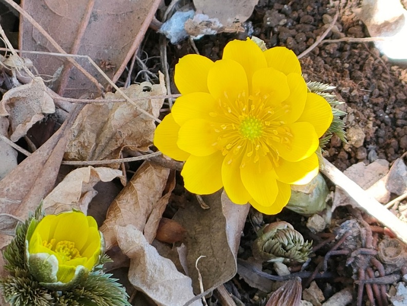 フクジュソウ、バイカオウレン、キバナセツブンソウ、アカシアの花。